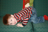 This is Isaac sitting in his froggy chair. He had decided it was better to wear no clothes after eating all his rice.